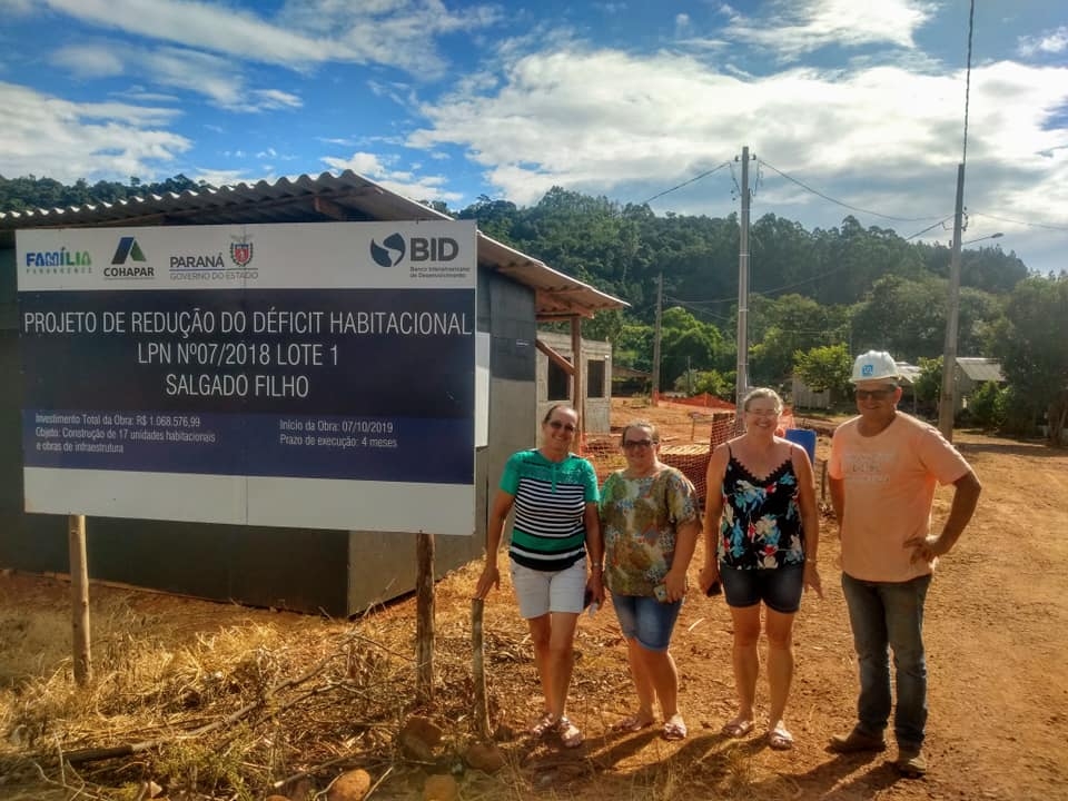 Equipe técnica Da Secretária de Assistência Social e CRAS em visita as obras do projeto de Déficit Habitacional do Programa Família Paranaense de Salgado Filho.