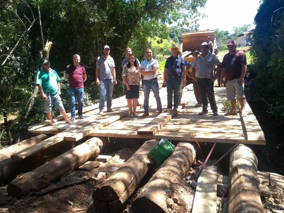 Serviço realizado com o Município de Flor da Serra do Sul, realização de recuperação de ponte que dá acesso Linha Pinheiro ( Salgado Filho) e Linha Gaúcha ( Flor da Serra do Sul) Parceria das duas Administração, para melhorar o tráfego de veículos, caminhões para escoamento de produtos, transporte Escolar, maquinas Agrícolas e equipamentos.