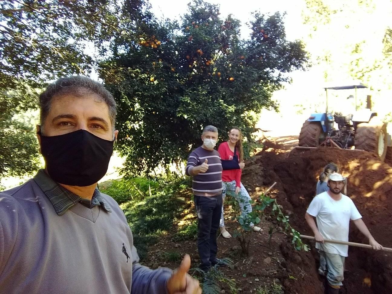 Em visita com o Prefeito Helton, na canalização da água para as propriedades da Linha Tuski, Quintino e alguns produtores da Linha União da Serra.A obra está em bom andamento, e em poucos dias será finalizada.