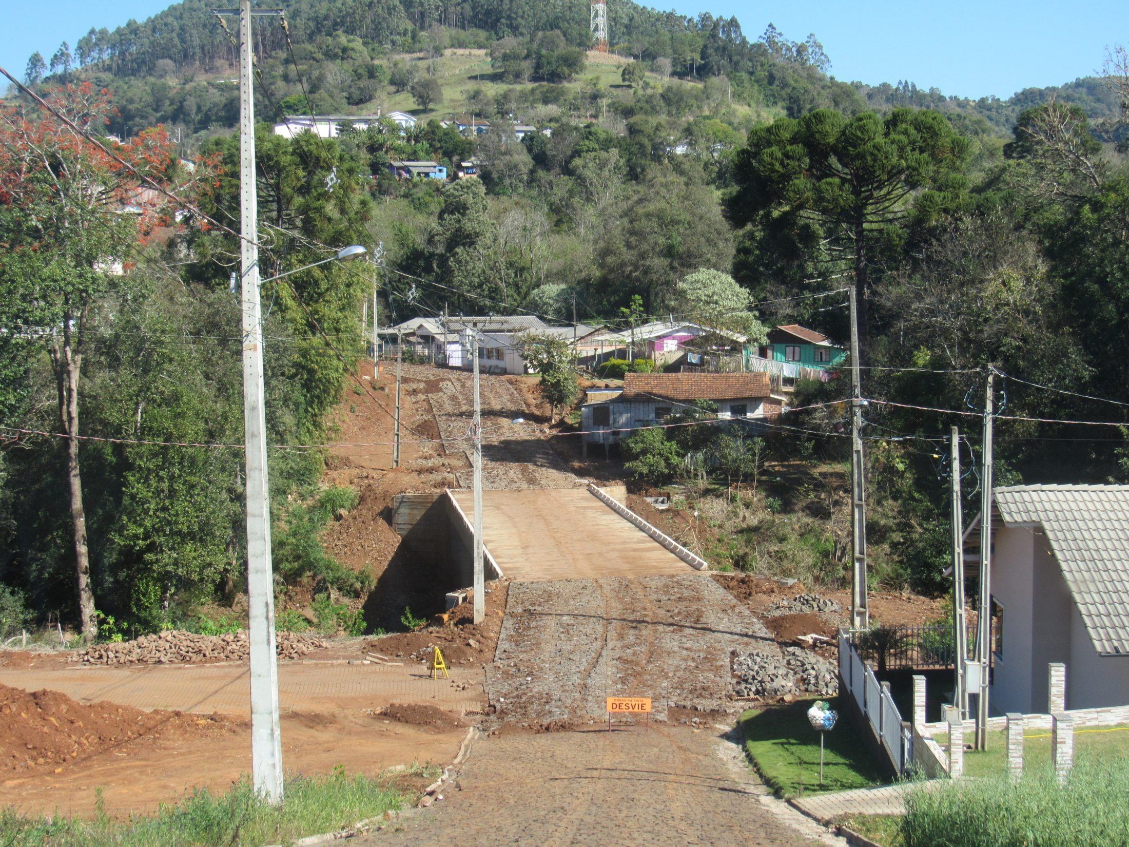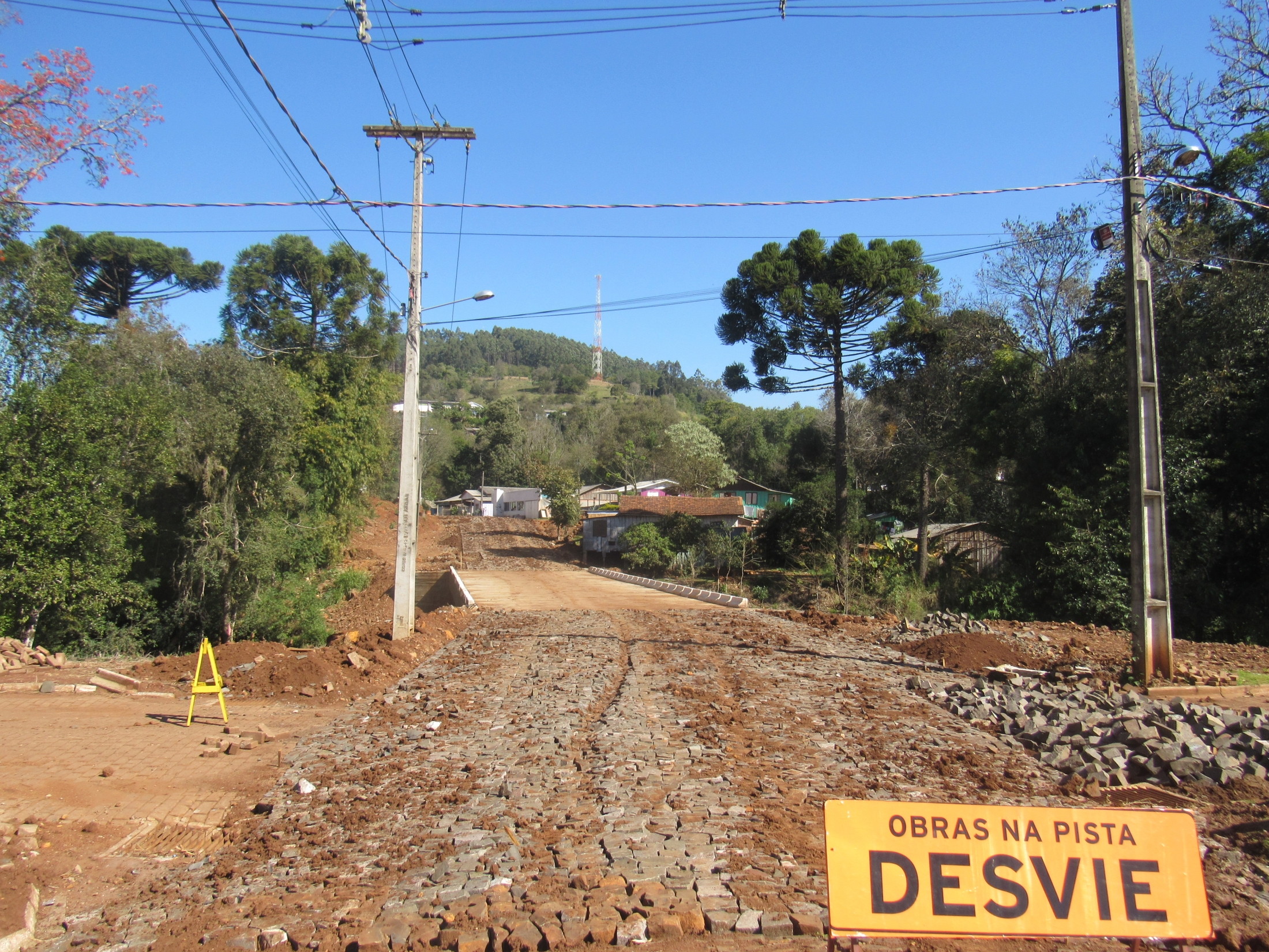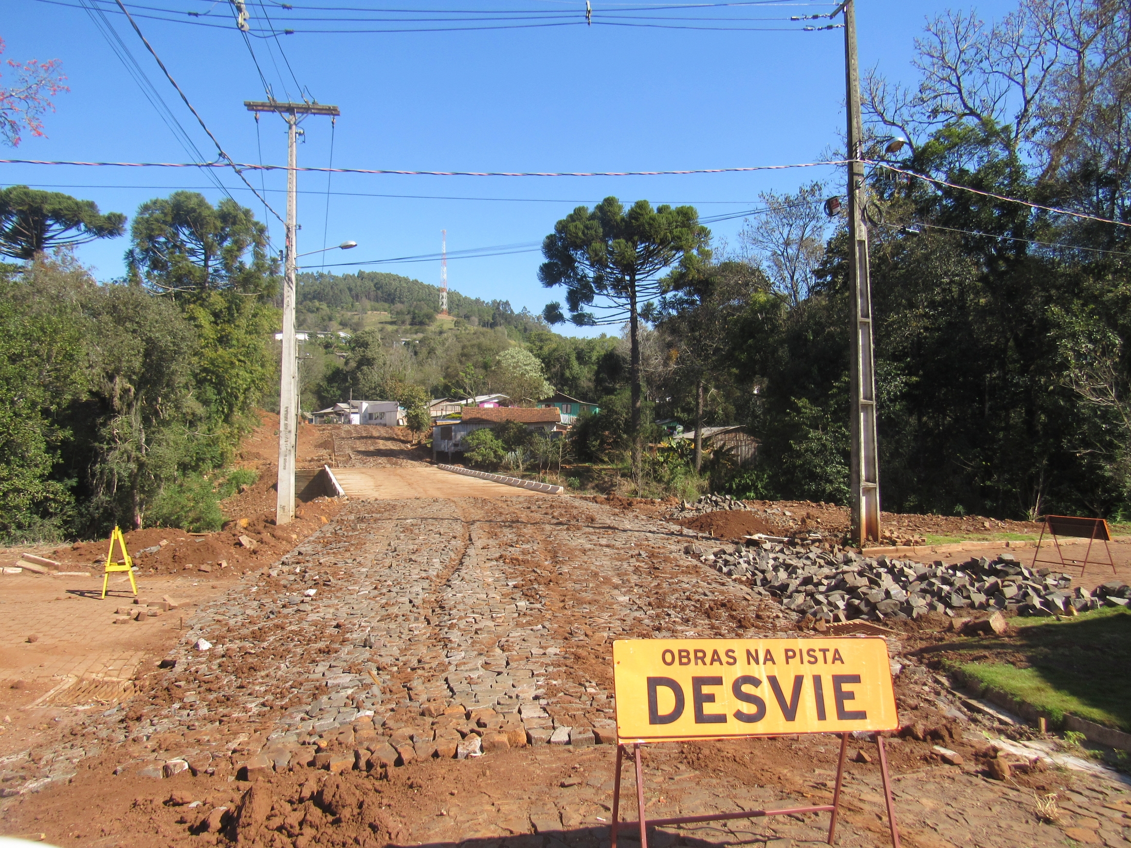 Início da primeira etapa das obras de Pavimentação Poliédrica, na Rua Cedro que dá acesso ao Bairro Mirante do Bosque. Obra viabilizada através do Ex Deputado Federal Valdir Rossoni com valor total de Um Milhão (R$1.000.000,00) de reais, que abrangerá toda área em torno do Bosque Municipal.