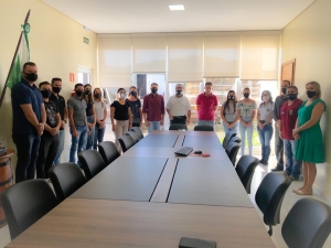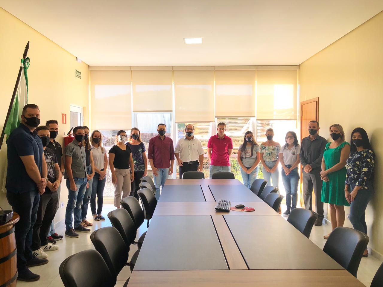 Todas as manhãs de segunda-feira, o prefeito Volmar e seu vice-prefeito Nilmar realizam um momento de oração junto aos servidores que trabalham de forma interna na Prefeitura Municipal.