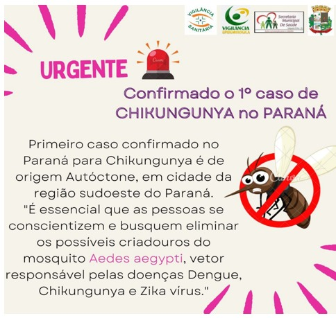 O município de Pato Branco, pertencente a região Sudoeste do estado Paraná registra o primeiro caso de chyncugunya do estado.
