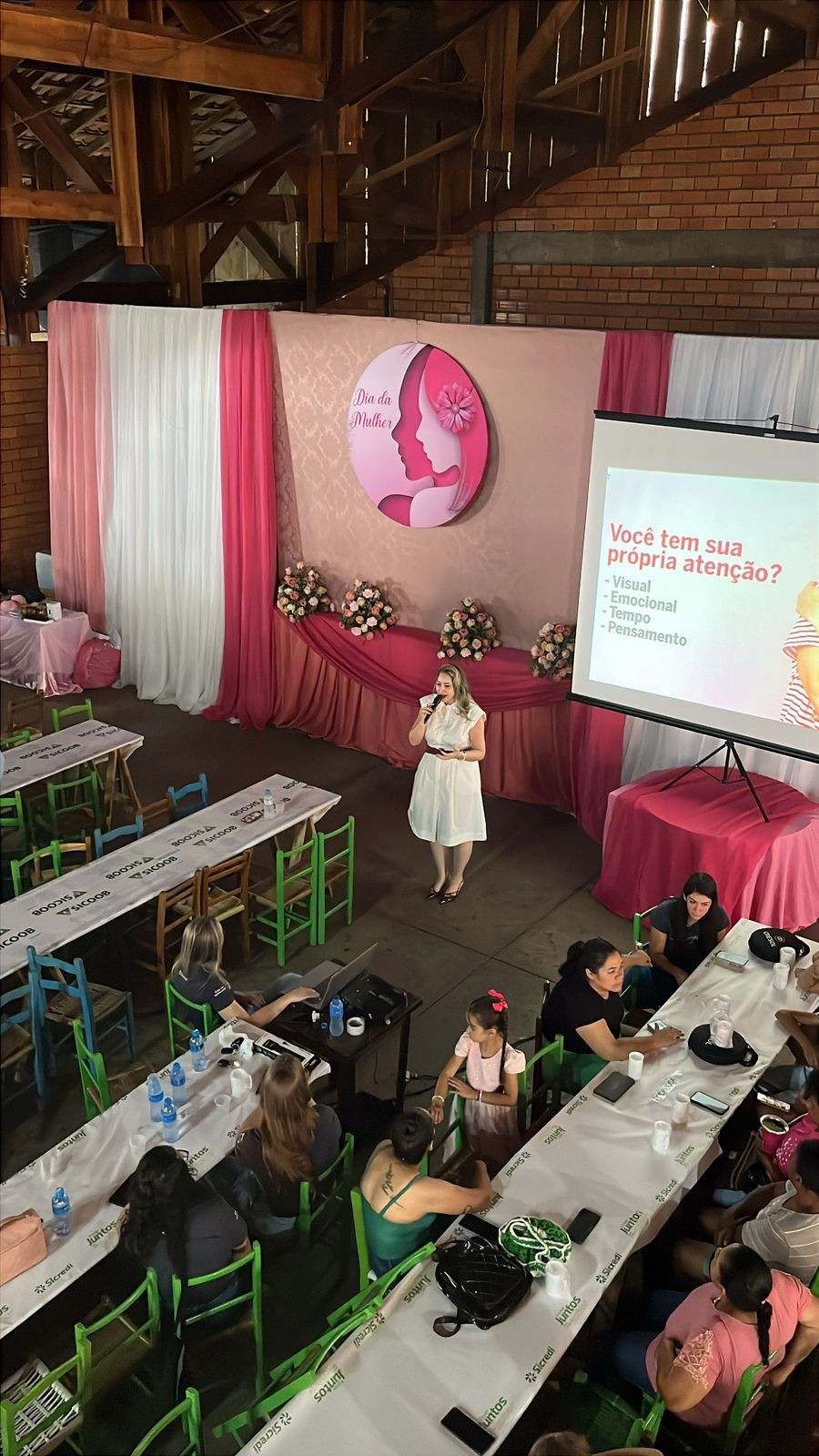 Durante o encontro, os participantes assistiram a uma palestra inspiradora ministrada por Marcellà Fabrício, abordando temas essenciais como empoderamento e protagonismo feminino na sociedade. Após a palestra, houve um sorteio de brindes, seguido por um almoço especial, proporcionando um momento de integração e reconhecimento às mulheres da comunidade.